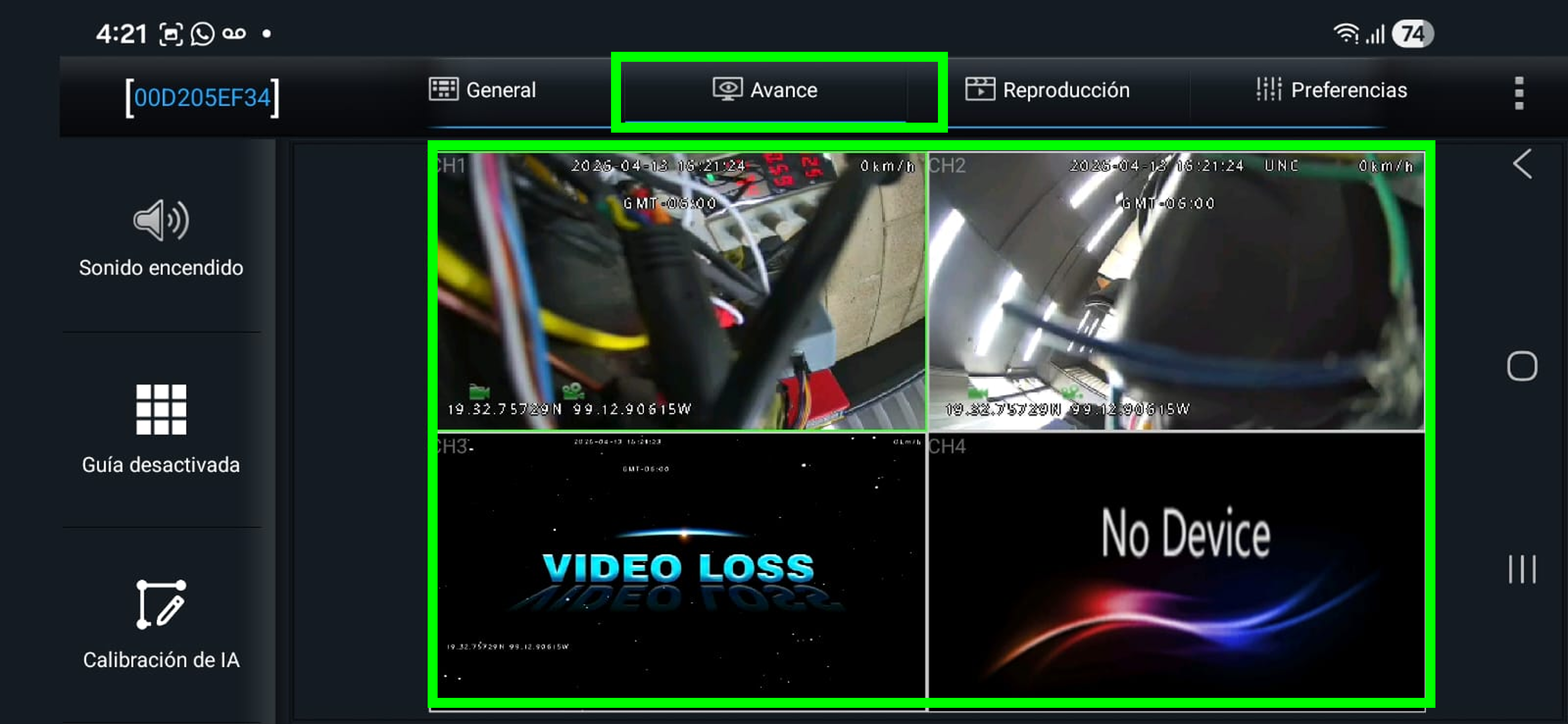 Detección de Video. En este ejemplo la camara tiene configurad3 canales pero solo reconoce dos, esto puede ser por que la camara extra presenta daño o el arnes de conexión (tema fisico).